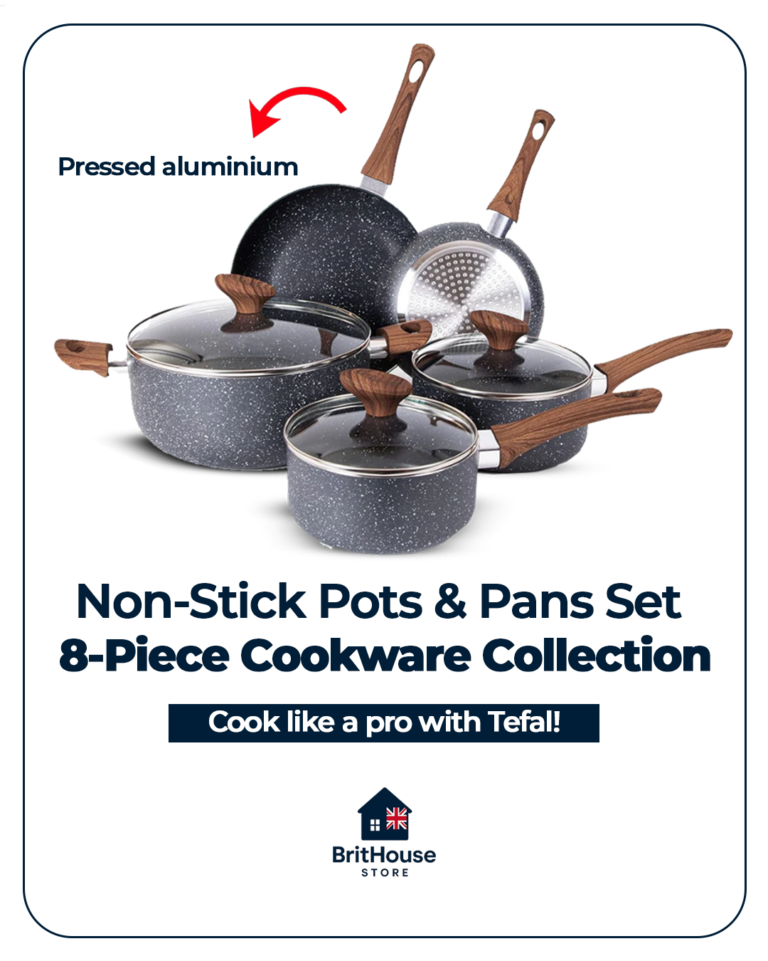 • 🍳 Non-Stick Pots & Pans Set – 8-Piece Cookware Collection